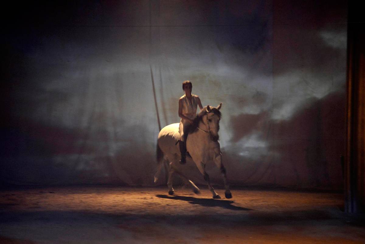 Un spectacle total conjuguant théâtre, danse, musique, projections et dans lequel vous croiserez pêle-mêle un cheval, un mégaphone, des talkies-walkies, un solo de trompette, une chanson de Vinicio Capossela ainsi que des extraits entremêlés du Journal de confinement de Wajdi Mouawad et d’Une journée particulière d’Ettore Scola ou encore des fragments de Dante, de Faust, de Shakespeare…