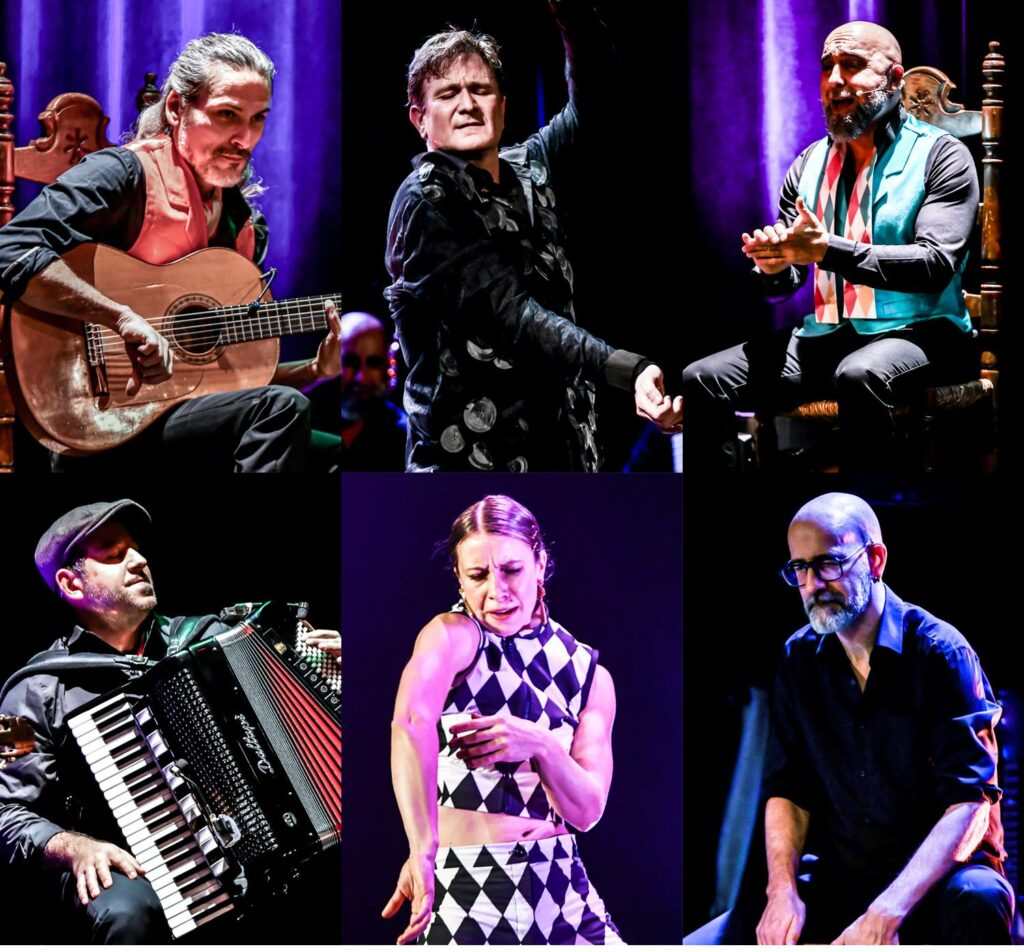 C’est sur la piste d’un cirque que Manolo Punto, la danseuse Sophie Palmer, le chanteur Alberto García, le guitariste Cristóbal Corbel, l’accordéoniste Adrian Jordan et le multi-instrumentiste Cédric Diot vous donnent rendez-vous pour ce spectacle flamenco riche en sensations !