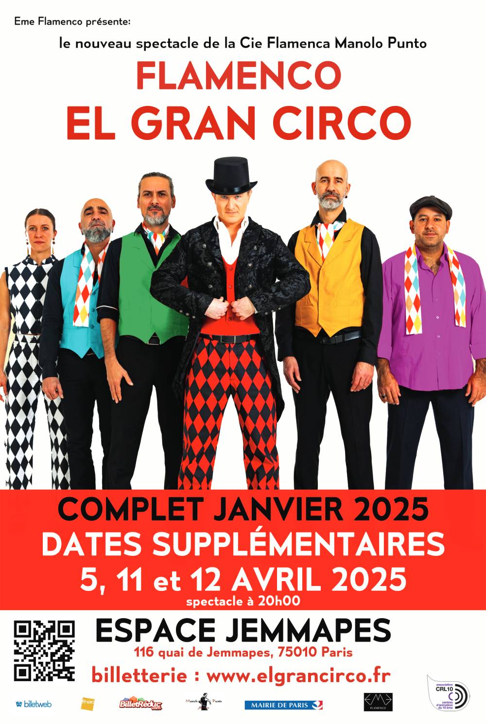 Après deux représentations parisiennes complètes en janvier dernier, El Gran Circo, la nouvelle création de la compagnie Flamenca Manolo Punto est de retour pour trois dates à l’Espace Jemmapes sur les bords du Canal Saint-Martin dans le 10ème arrondissement de Paris. Un spectacle plein de créativité, gorgé de couleurs et d’énergie, qui emmène la tradition flamenca à la rencontre d’autres cultures, d’autres univers, d’autres styles…