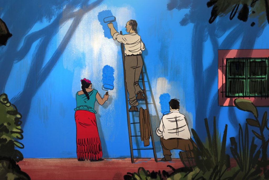 Mais au fur et à mesure que l’histoire avance… la fuite, le Mexique, l’amour avec Frida Kahlo… le dessin change alors, plus gai et coloré !