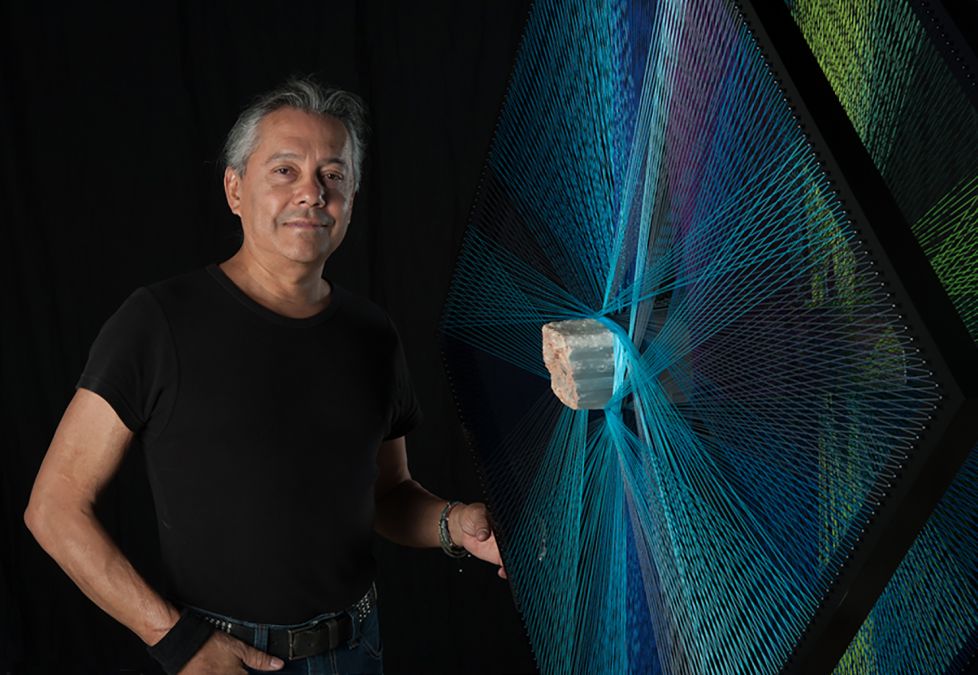 La géométrie de Milton Becerra est indissociable de la nature avec laquelle elle entretient une relation fusionnelle. Le tissage ouvre la permanence du lien à la terre et celle de l’identité culturelle. Nœuds et liens, tensions de cordes et de fils comme des chemins initiatiques ancrent l’artiste dans un territoire menacé.
