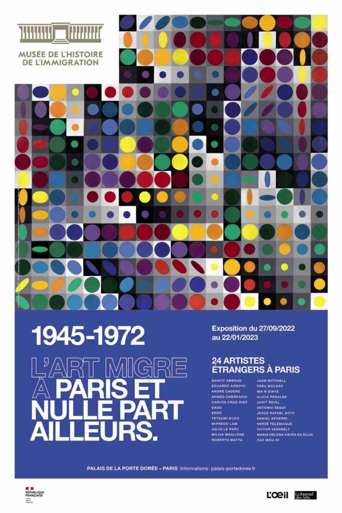 Le Musée de l’Histoire de l’Immigration met en lumière l’œuvre de 24 artistes étrangers ayant vécu en France dans la période 1945-1972. Une période généralement méconnue du grand public et qui révèle l’effervescence artistique de la Ville lumière. Si à partir de la fin des années 50, New-York devient le centre artistique mondial, Paris n’est pas en reste et accueille des artistes venus de quatre coins du monde en quête de renouveau, attirés par sa modernité et son cosmopolitisme.