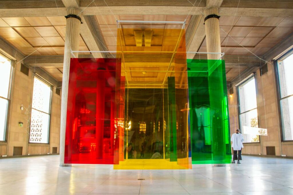 Sur les murs du Palais de la porte dorée, vous pourrez également découvrir l’œuvre de Victor Vasarely, créateur d’un alphabet plastique de formes et de couleurs combinables à l’infini qui a profondément marqué le milieu artistique de ces années-là. Vous serez également surpris par les compositions de l’argentin Julio Le Parc, cofondateur du Groupe de Recherche d’Art Visuel (GRAV). Les vénézuéliens Jesús Rafael Soto et Carlos Cruz-Diez sont aussi présentent dans l’exposition. Tous deux intègrent le temps et le mouvement dans leurs travaux et font participer le spectateur à l’œuvre. Ne quittez pas l’exposition sans avoir essayé le Penetrable blanco y amarillo de Soto ou le Labyrinthe de Transchromie B de Carlos Cruz-Diez.