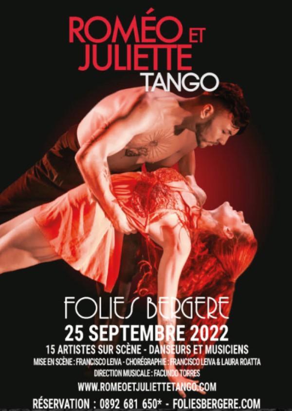 Mis en scène par Francisco Leiva, Roméo et Juliette Tango est un spectacle d’une grande vitalité qui prend le parti d’inscrire le récit de William Shakespeare dans notre époque contemporaine. Le metteur en scène argentin, créateur et directeur de l’École de Tango de Paris et initiateur de La Milonga El Corazon aux Abbesses, a déjà a son actif de nombreux spectacles. Il nous explique lui-même les raisons de cet audacieux parti pris : « De nombreux spectacles de Tango présentés sur les scènes internationales racontent l’histoire du Tango et renvoient une image très stéréotypée de cette danse ainsi que celle de l’Argentine…Nous souhaitons donc éloigner le tango argentin de cette image, en racontant une histoire différente, en proposant une mise en scène ancrée dans notre époque tout en retraçant les aspects essentiels de cette pièce : l’amour, la passion, l’orgueil, la haine et la mort. »